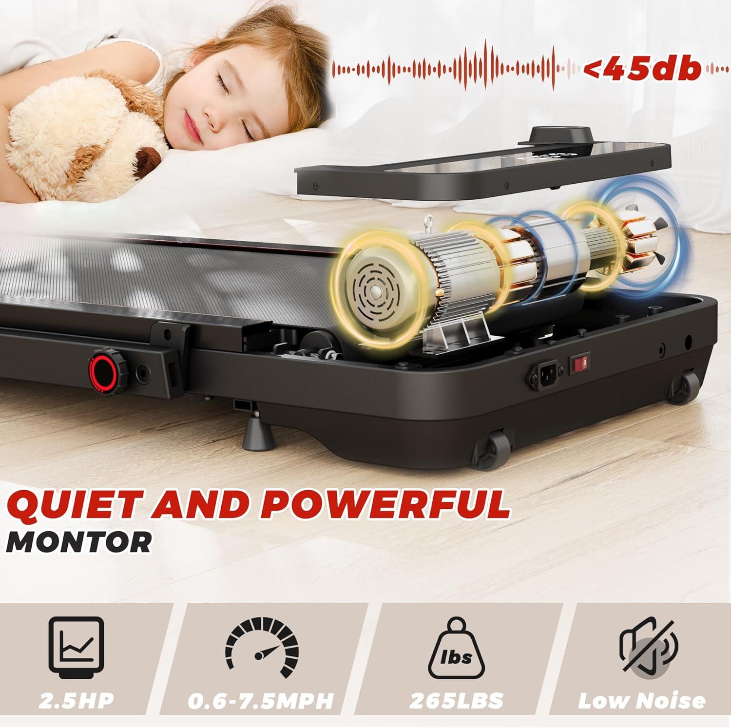 2 in 1 Treadmill, Walking Pad With Remote Control LED Display, Portable for Home/Office, 2.5HP Folding, 265lbs Weight Capacity(Black)