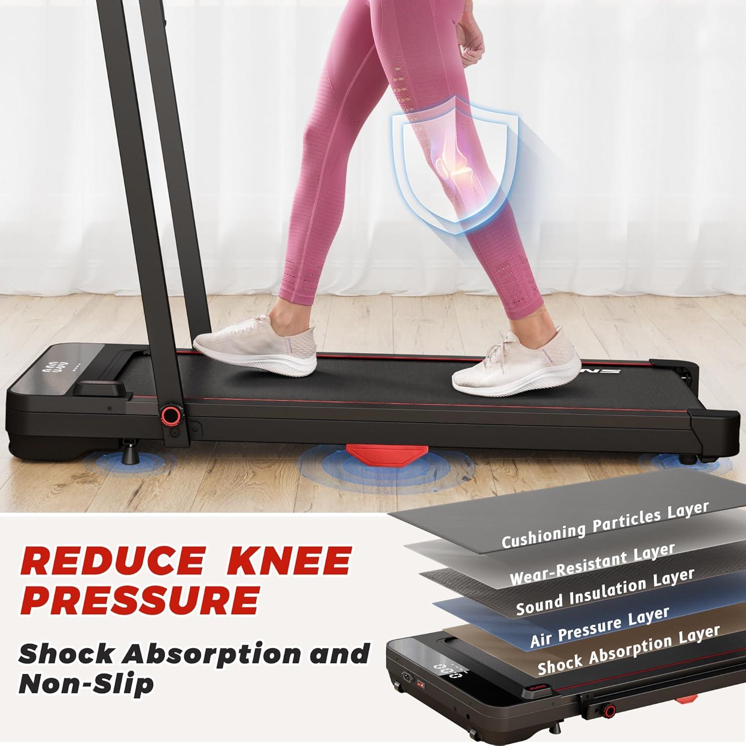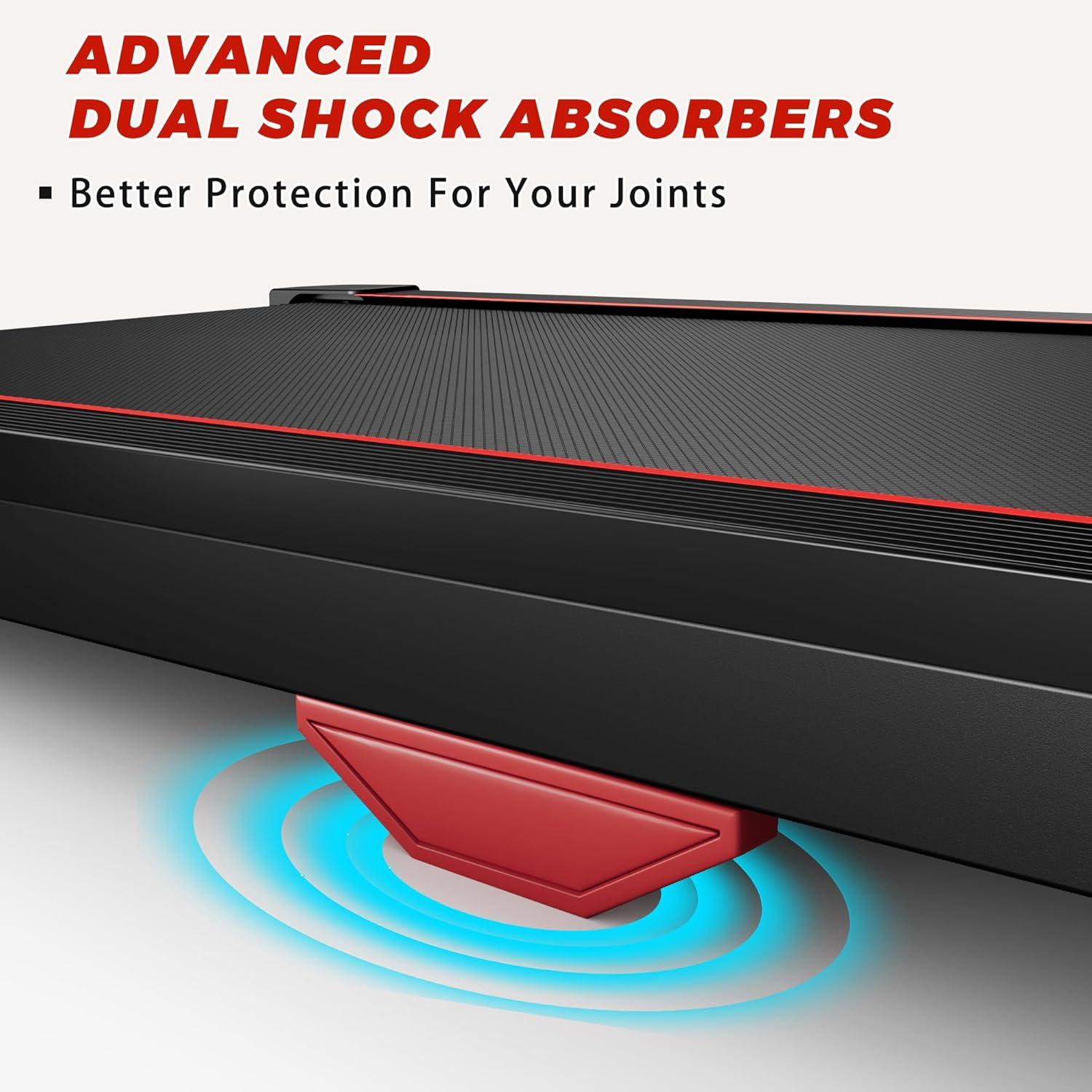 Shock Absorption System: The bottom is equipped with advanced technology dual shock absorbers and adjustable foot pads, paired with 5-layer running belt and armrest to make your walking more stable, running more comfortable, and protect your knees.