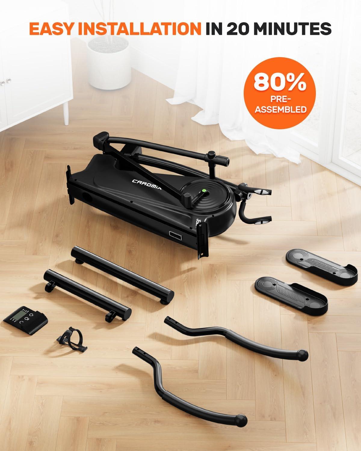 Quick Installation: With 80% pre-assembled parts, installation takes just about 20 minutes. Spend less time setting up and more time achieving your fitness goals with this user-friendly home gym equipment. With the instruction manual, you can get your elliptical machine ready fast!