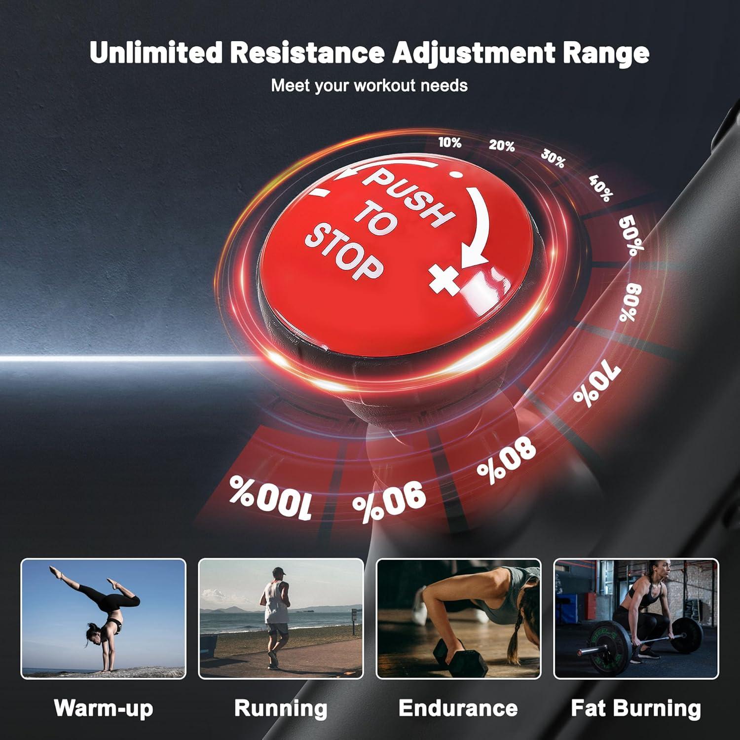 Stability & Security: This bicycle uses sturdy materials to maintain its overall rigidity and adopts a triangular structure design to ensure its stability. It is also equipped with four thickened anti slip bases to ensure your safety during use, and the elderly and children can use it with confidence. Our fitness bike can support a maximum weight of 300LBS, which can fully meet the exercise needs of different groups of people. At the same time, the stationary bike has a 0-100 resistance adjustment, which can meet your different exercise needs.