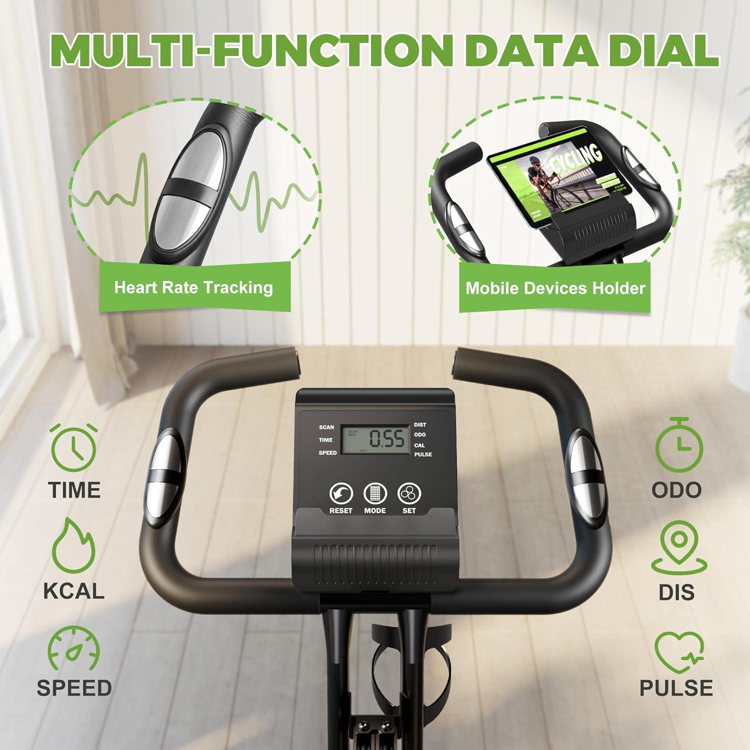5-IN-1 Folding Exercise Bike: This bike allows you to exercise in both upright and semi reclining positions, whether you want to burn more calories or enjoy a relaxed and comfortable riding experience. In addition, the bicycle is also equipped with an arm resistance band, which helps to exercise your upper muscles and relax your leg muscles