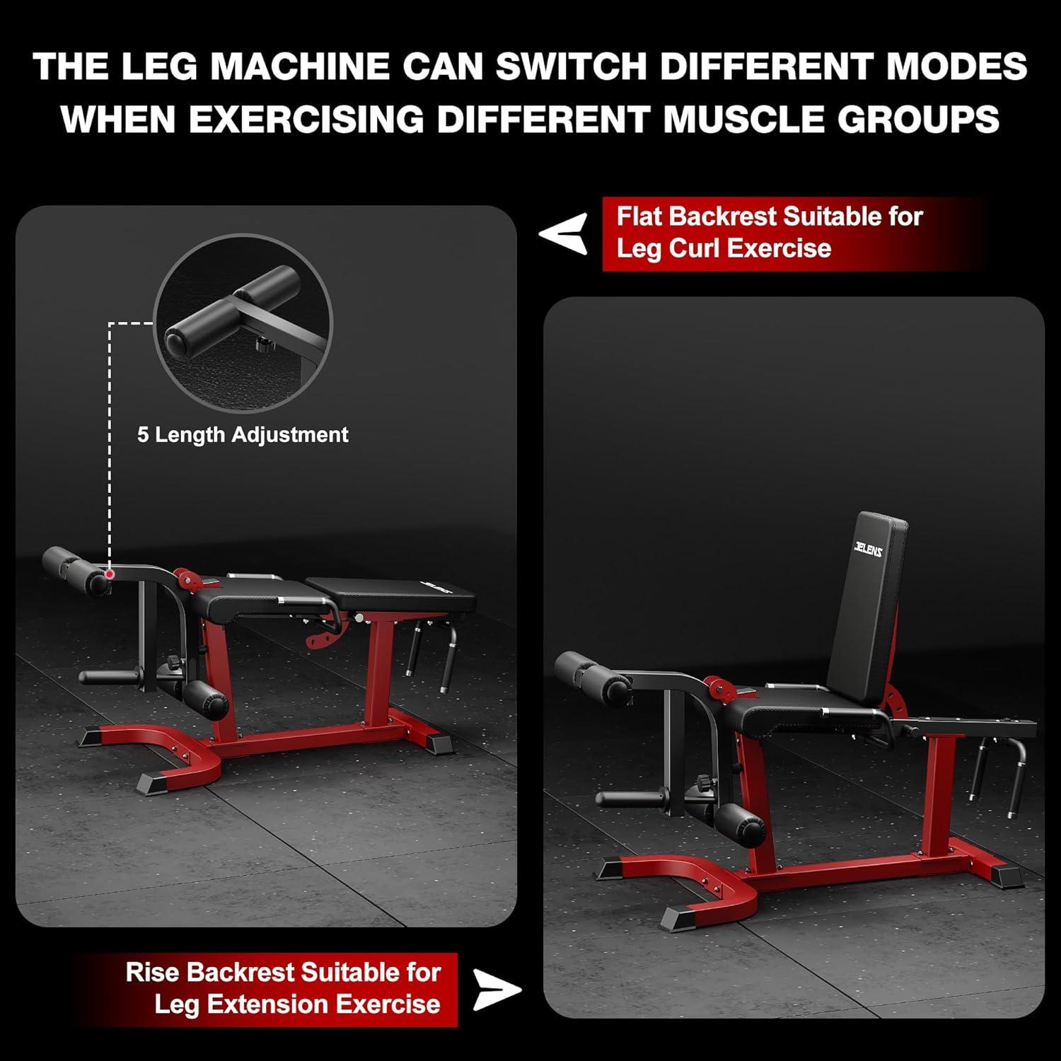 【Comprehensive Lower Body Training】 Professional-grade JELENS leg extension and curl machine is an excellent choice for leg muscle training in your home gym.This adjustable machine provides targeted training for your quadriceps and hamstring muscles through sitting leg extension and lying leg bending.It is designed for people of all fitness levels, completely changing your fitness habits.