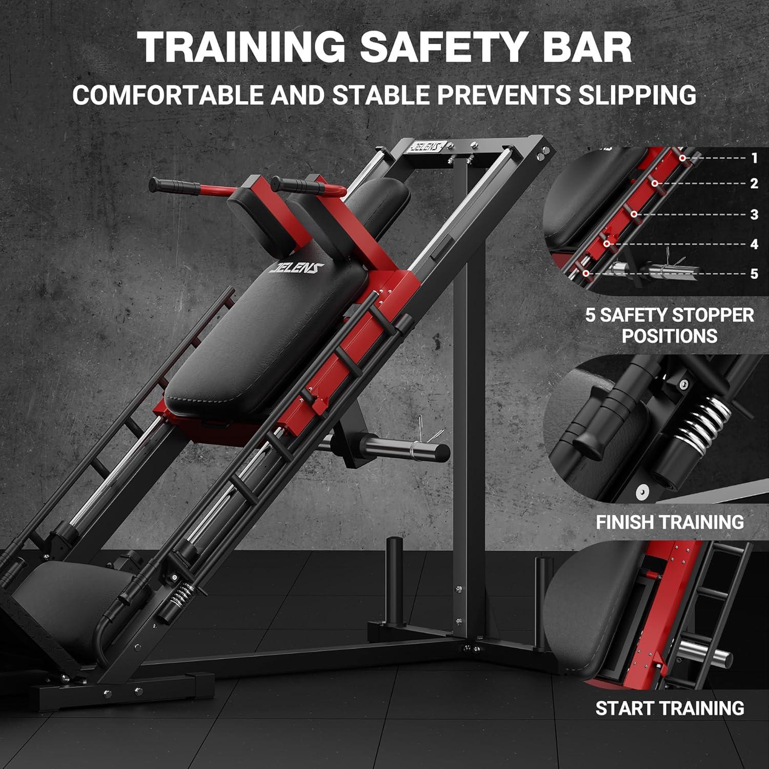 【Why Choose JELENS】JELENS stands behind the quality of our home gym equipment. Every leg press machine is strictly inspected and shipped in two boxes to ensure it arrives safely. The accompanying manual provides detailed installation instructions, allowing you to easily and quickly complete the installation. Our professional after-sales team is here to help! No matter what problems you encounter, we will provide specific solutions based on your needs
