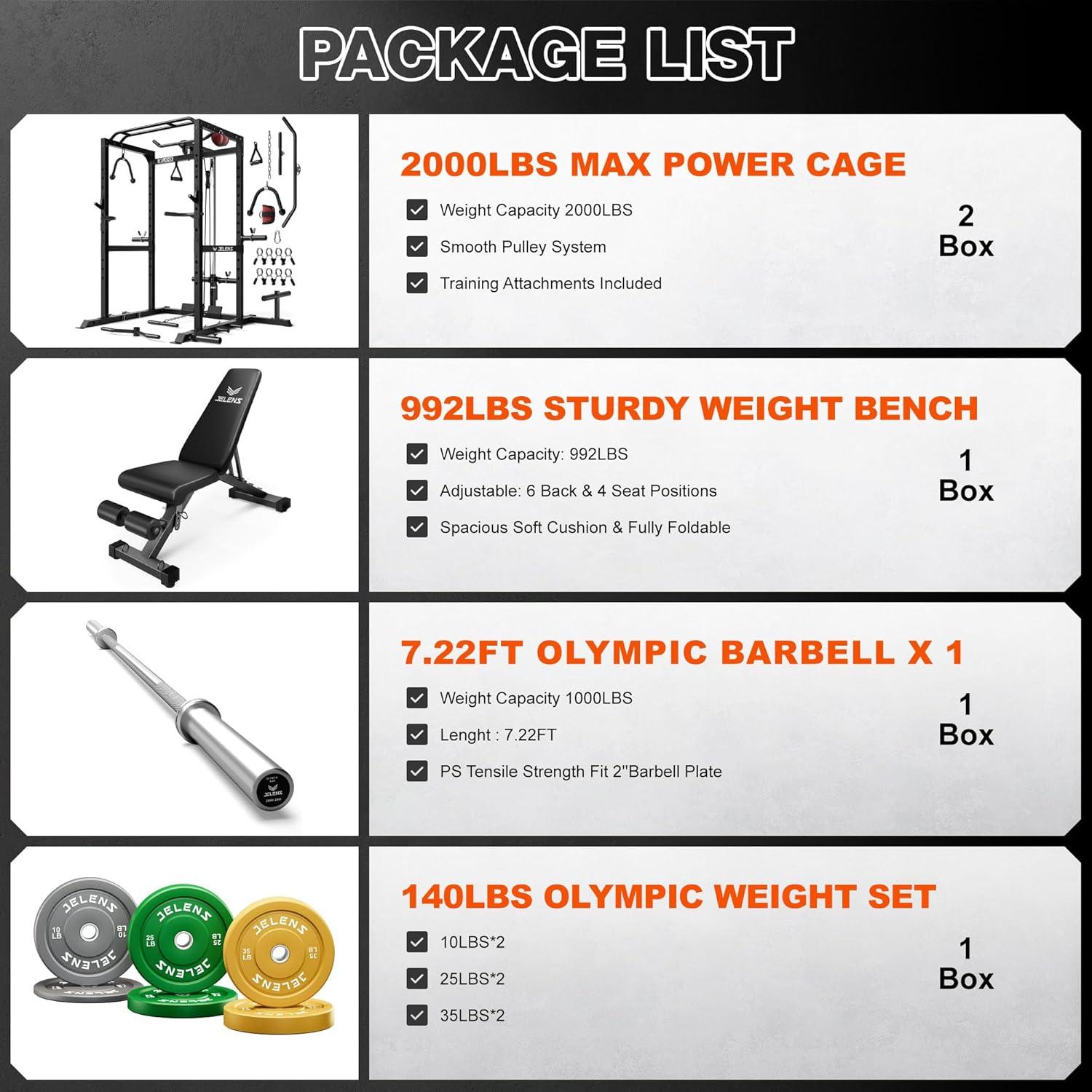 JELENS Power Cage,2000lbs Multi-Function Power Rack
